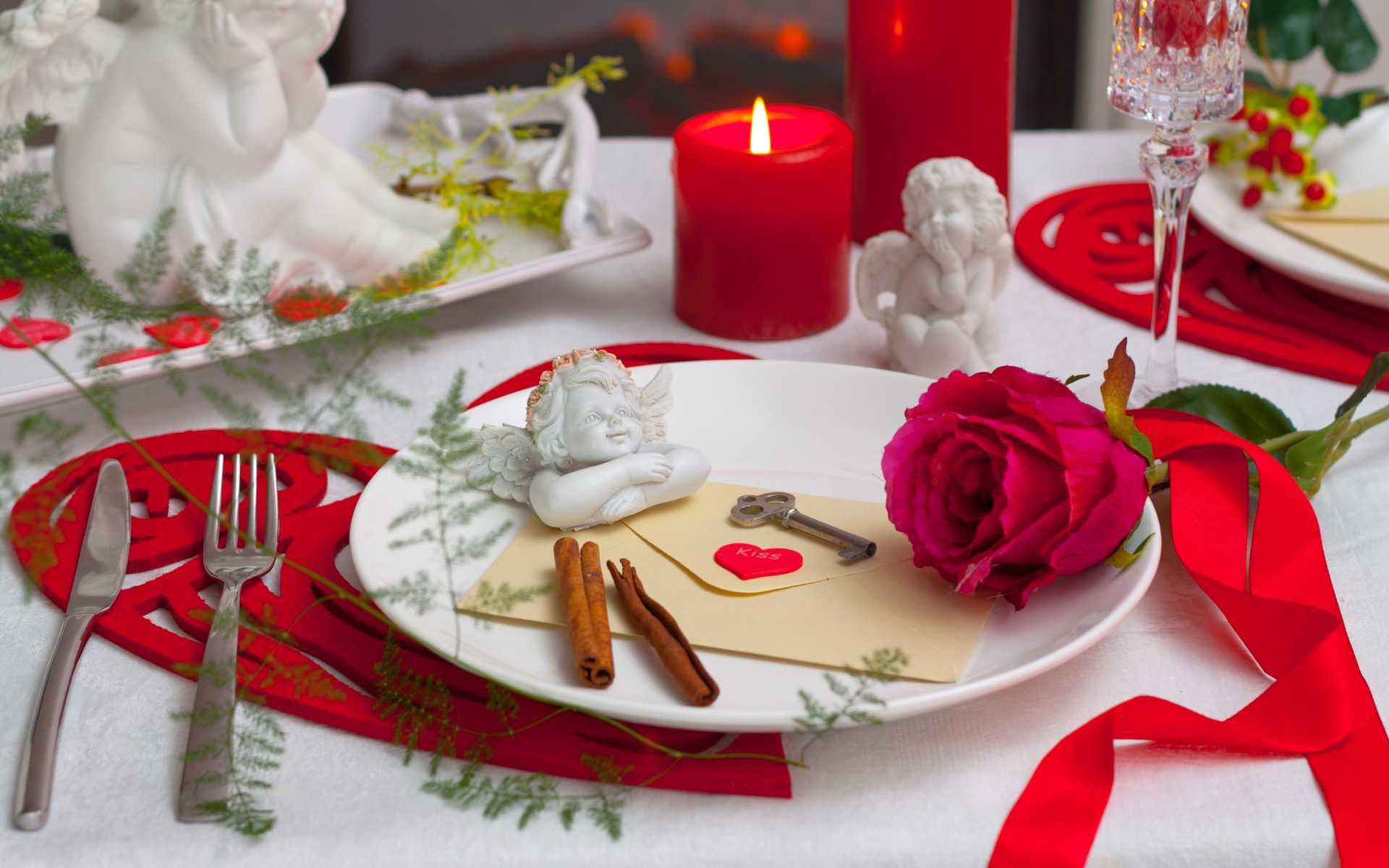 Украсить на День святого Валентина стол в классическом варианте можно с использованием тематических салфеток, цветочных композиций, подходящих скатертей и оригинальной посуды. Для ужина на двоих незаменимым атрибутом являются свечи. Любители романтического стиля сегодня расширяют перечень украшений. Они используют: