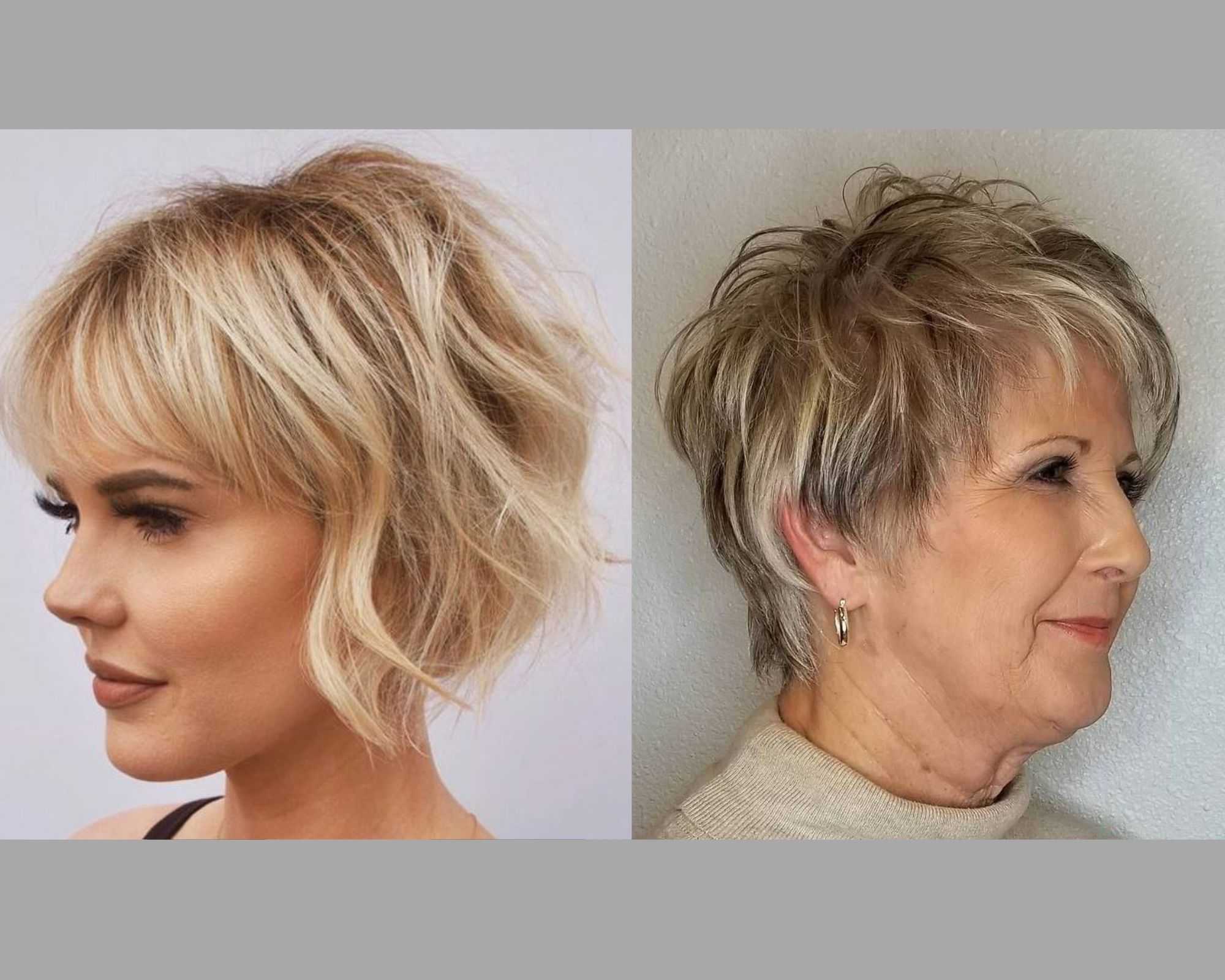 Каскад на коротких волосах подойдет для женщин за 50-60 лет. В этом возрасте нередко шевелюра начинает стремительно седеть и истончаться (как из-за перемен в гормональном фоне, так и из-за регулярных окрашиваний). Каскад освежит образ и сделает внешность ухоженной.