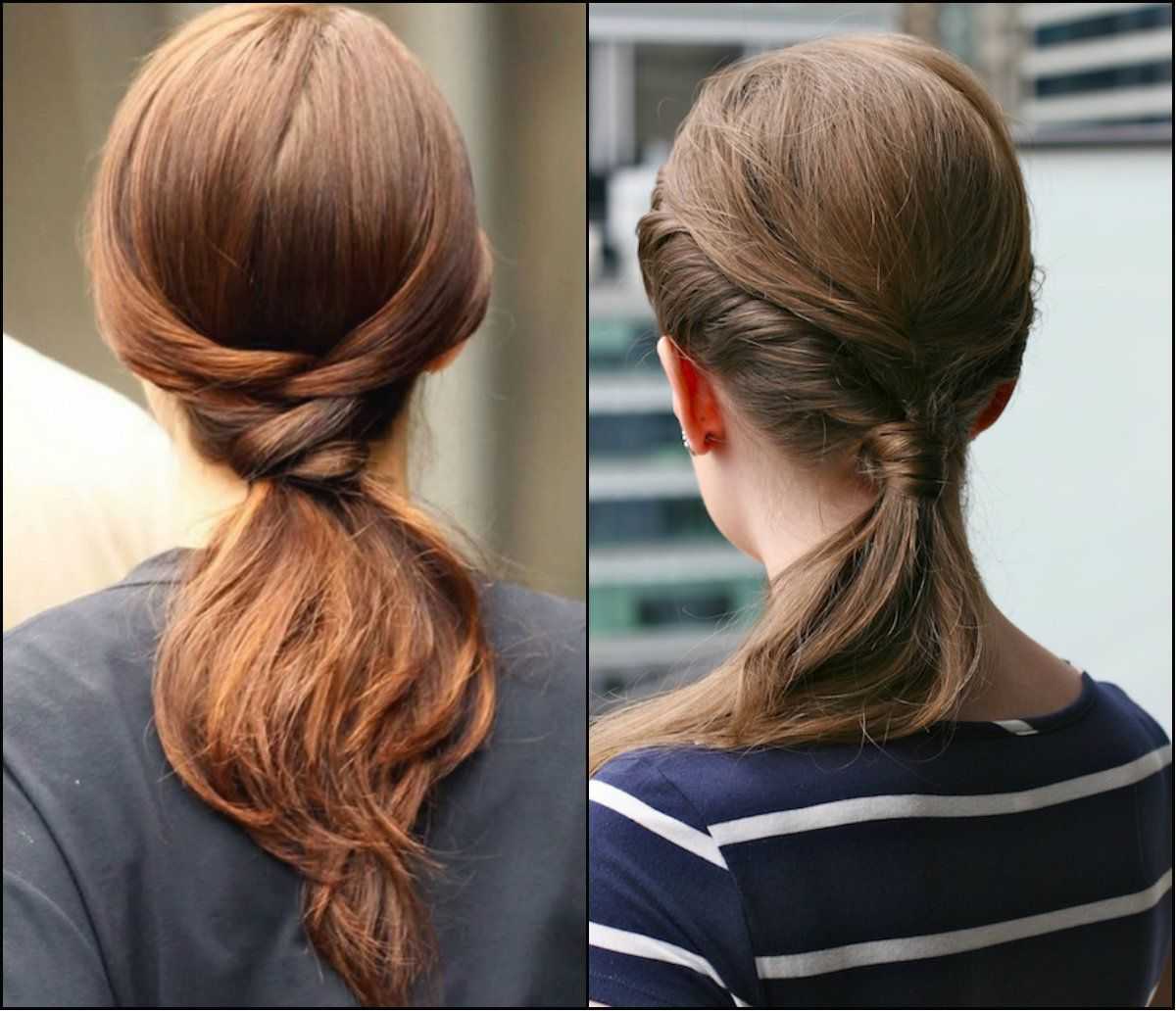 На основе хвоста можно придумать большое количество причесок. Хвост может быть с плетением и без, сбоку или сверху, с начесом и без, высокий и низкий, вывернутый. Самый обычный простой хвост будет смотреться необычно, если обернуть резинку прядкой своих волос или косичкой. Закрепите конец пряди невидимкой.