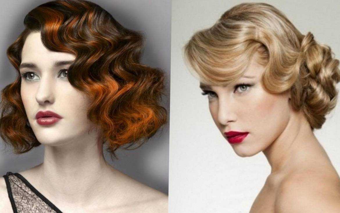 Кроме этого, олицетворением стиля выступает волнистое каре. Пряди необходимо подкрутить в легкие локоны и зафиксировать лаком. Можно зачесать все волосы назад или разделить на пробор. Отличным решением станет боковой пробор, большая часть которого уложена в ретро-волны.