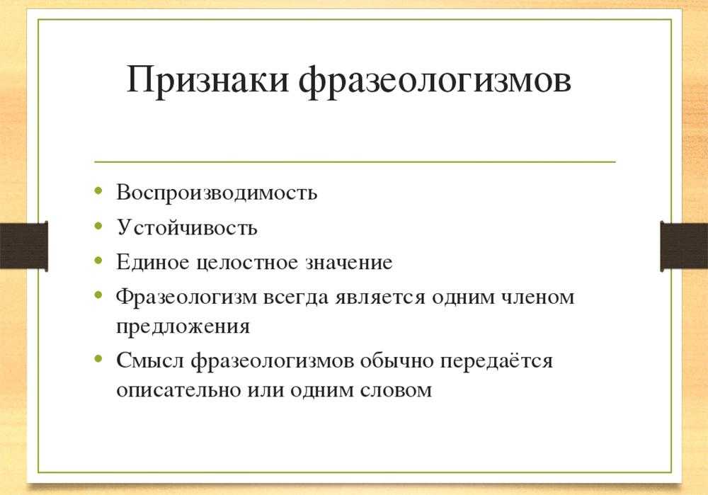 Признаки фразеологизмов