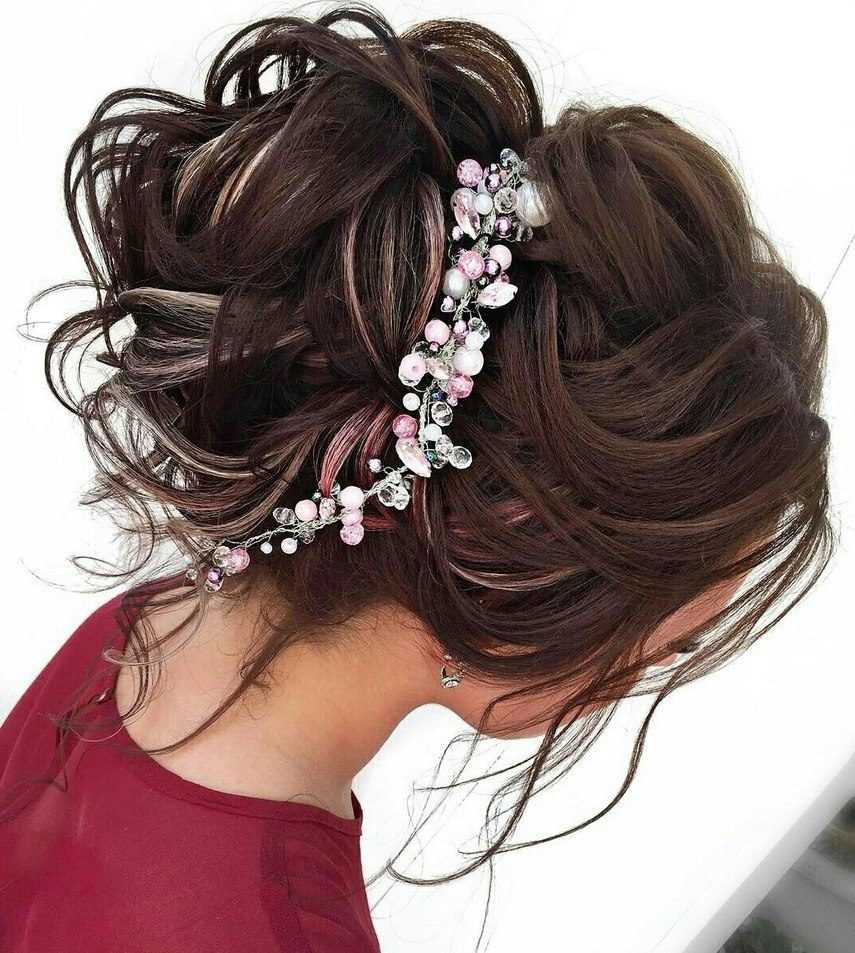 Разнообразить прически поможет заколка со стразами, а также диадема