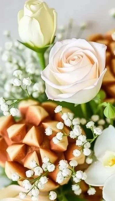 Волосы часто собирали вверх, чтобы не мешать в повседневной жизни, но при этом украшали их цветами, лентами или небольшими диадемами. Цветочные украшения, особенно живые цветы, символизировали надежду и новую жизнь. Эти прически отражали дух времени – стойкость, оптимизм и веру в лучшее будущее. Они стали символом свадебной моды 1940-х годов, сочетая в себе практичность и романтичность.