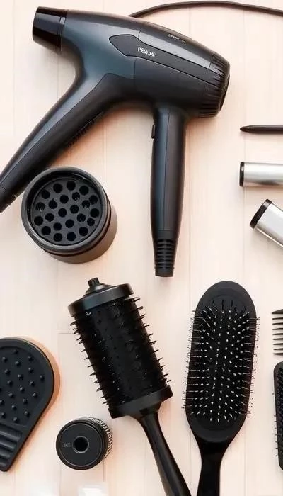 Инструменты: Для создания разнообразных укладок вам понадобятся: фен с насадками (диффузор для объема, концентратор для гладкости), утюжок для выпрямления и создания волн, плойка различных диаметров для формирования локонов, брашинг для придания объема и направления, различные расчески (широкая для распутывания, тонкая для пробора, массажная для стимуляции кровообращения).